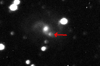 The first image shows IC1296 recorded for 1000 seconds on 8-6.1434-2013. The arrow points to the pinprick of light that is in the process of blossoming into SN2013ev.