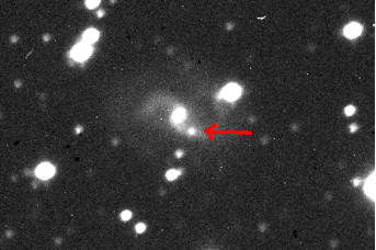 The first image shows IC1296 recorded for 1000 seconds on 8-6.1434-2013. The arrow points to the pinprick of light that is in the process of blossoming into SN2013ev.