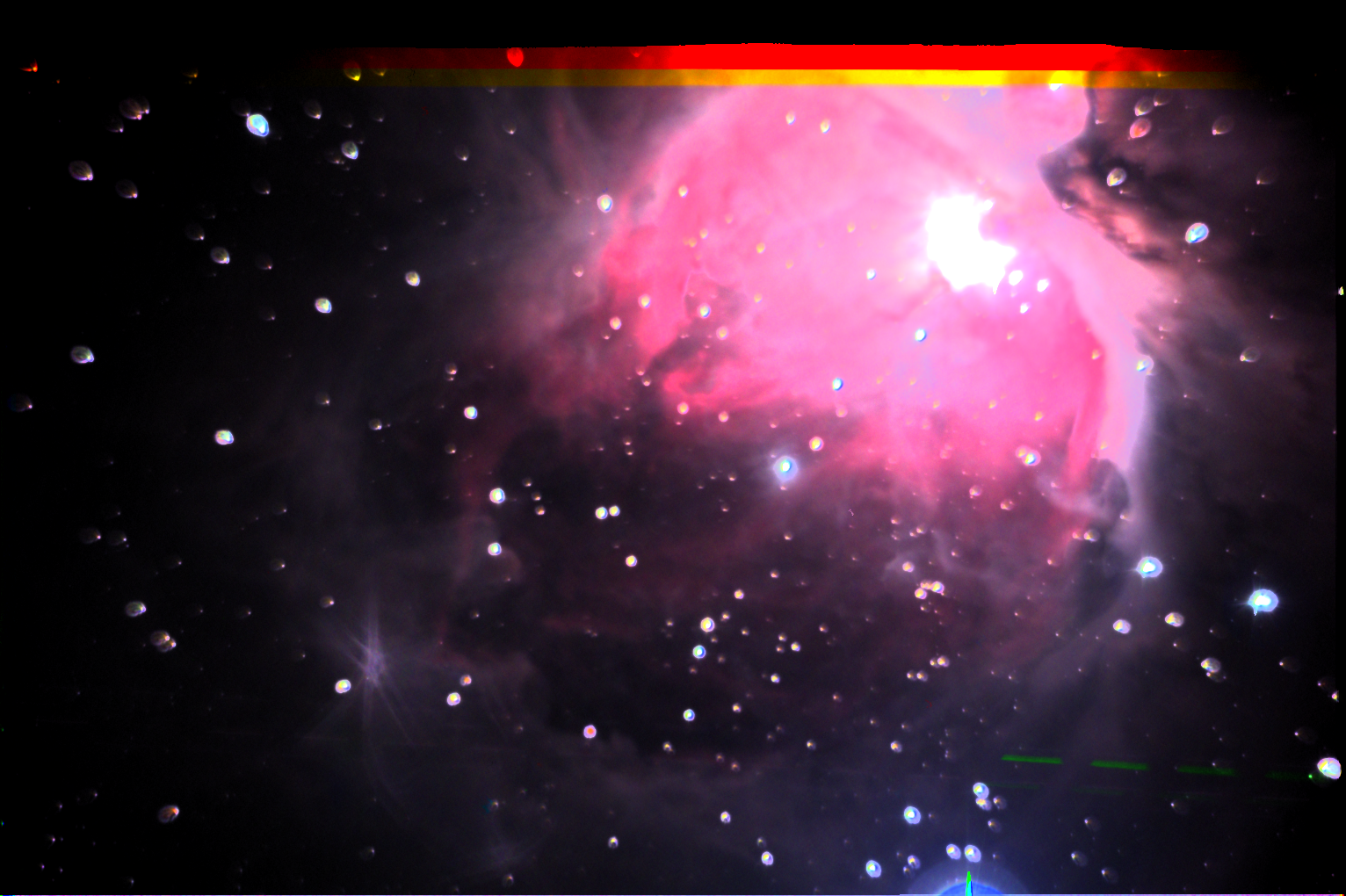 The image above was taken on a clear night in March 2019 using the F2 configuration in BB2. It was taken with the color wheel and deliberately made a little out of focus so as to make the bright stars larger.